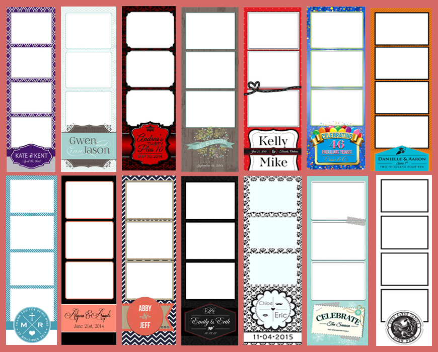 Leave your mark on every photo strip that the Booth prints out. We will work with you to create a custom logo that defines the personal style of your event. Come to us with your own design in tow or let us help you find your unique inspiration.